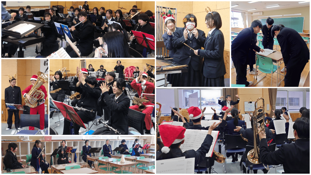 2学期が終わり、学校は冬休みを迎える雰囲気が色濃くなってきました。吹奏楽部はあきた総文のプレ大会を間近に控え、引き続き練習に打ち込む毎日ですが、部員たちは合同バンドでの演奏を楽しみながら部活動に励んでいます。